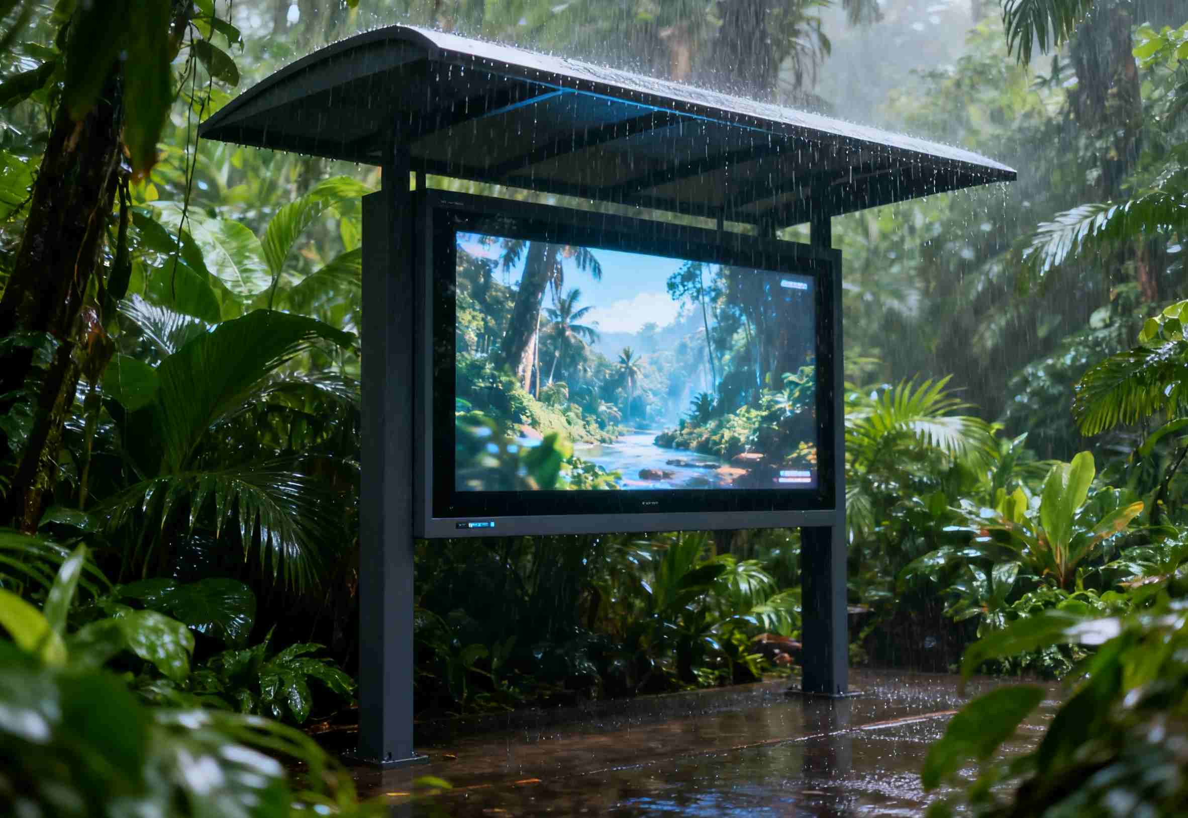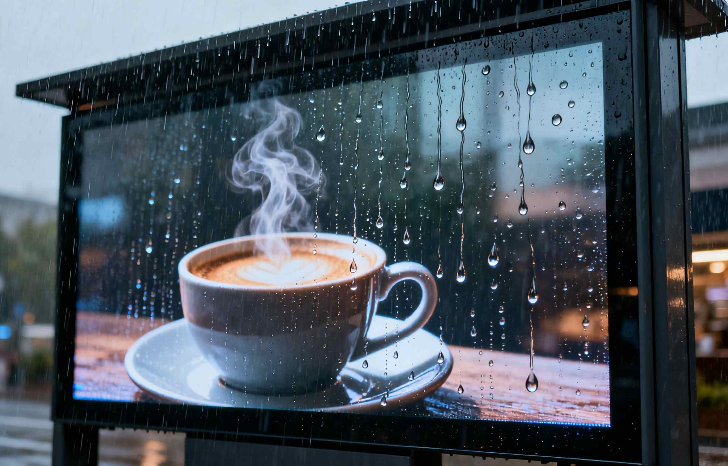 On one hand, the AR coating itself has hydrophobic properties: when raindrops fall on the glass, they won’t stick to the surface to form a water film, but will roll off automatically as small water droplets, just like "lotus leaves repelling water". Even in moderate rain, the screen won’t be blurred by rain, and the advertising image remains clear at all times. On the other hand, the laminated layer can "isolate moisture": ordinary glass is a single layer, and when the temperature difference is large on rainy days, water droplets tend to condense on the inner side of the glass; while AR laminated anti-glare glass adopts a "double-layer glass + middle laminated layer" structure. The laminated layer can block moisture, so even if it rains heavily outside, the inner side of the glass won’t fog up or form water droplets, avoiding the image being "blurred both inside and out".