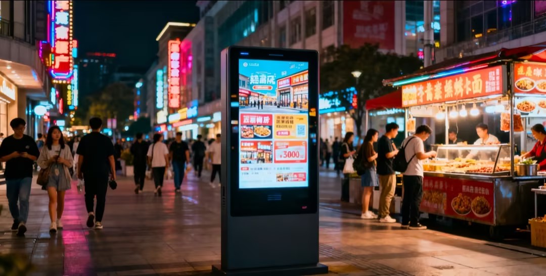 Commercial District Promotion: Custom 4K ultra-high-definition large screens (available in multiple sizes from 18.5 inches to 110 inches), paired with 10-point touch control and QR code interaction functions. Dynamic content + real-time interaction attracts pedestrian attention, helping brands drive promotional conversions.